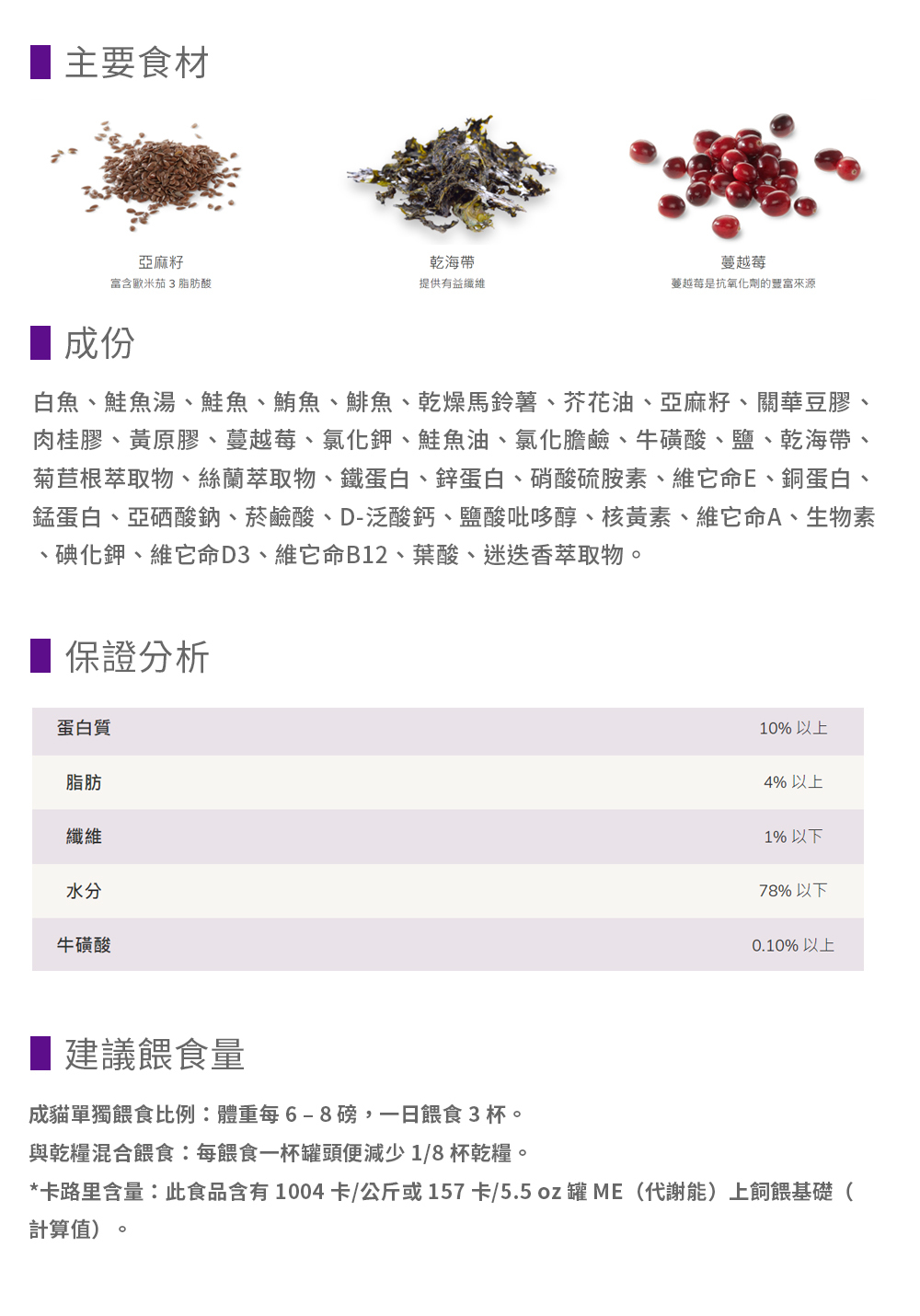 純天然成分,無卡拉膠、無穀物的主食罐,採用新鮮肉醬製成,不但美味健康,還兼顧貓咪的絕佳口感!
