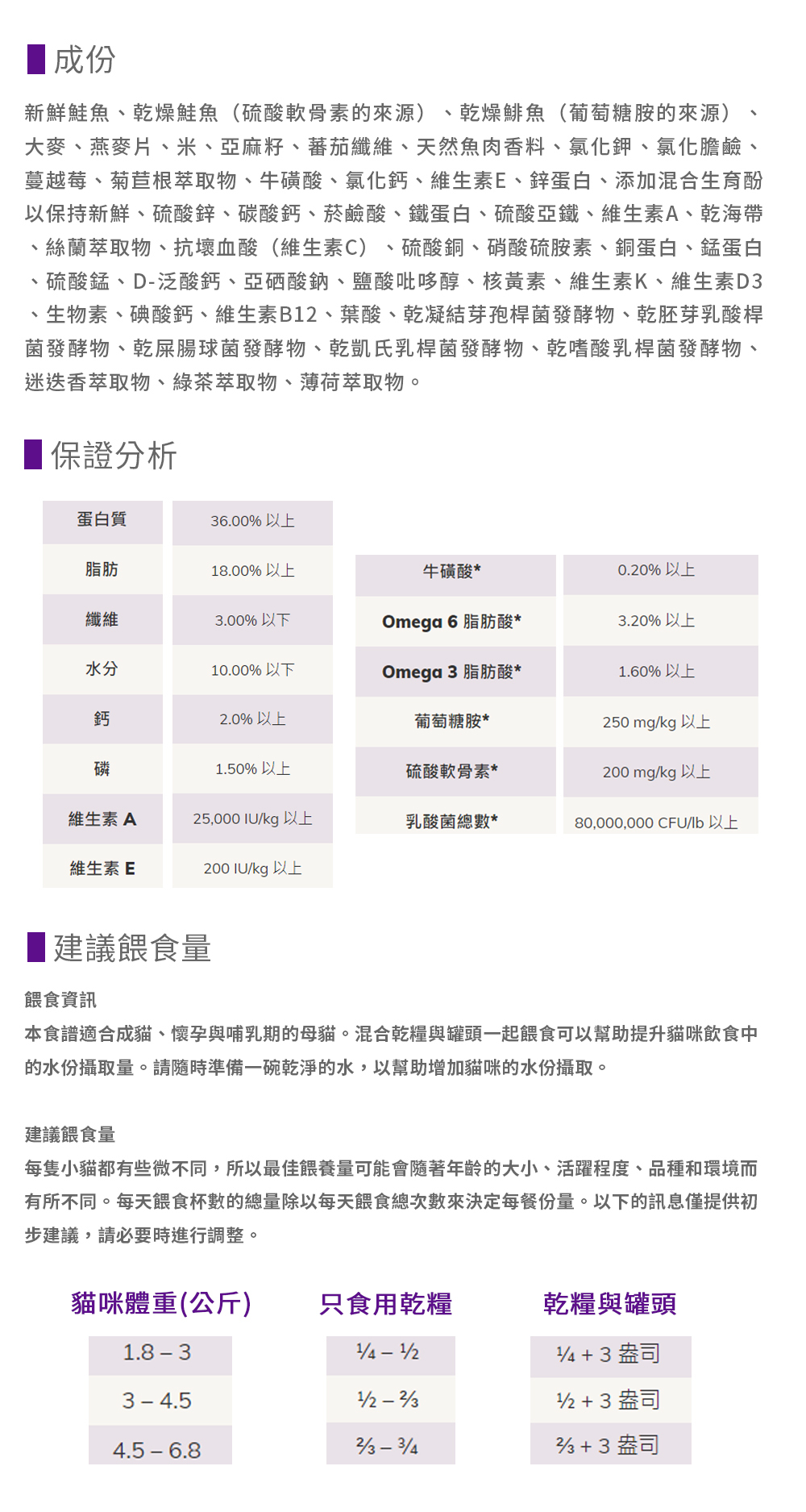 *全方位成貓深海鮭魚是富含肉類、穀類與水果的全方位食譜,提供完整均衡的營養,幫助成貓維持健康與活力。