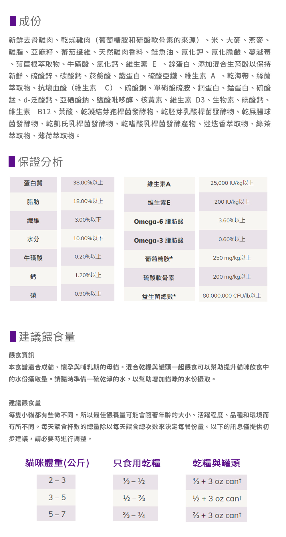 *是以健康、天然成份精心製作而成,提供完整均衡的營養。每一個美味的食譜都有優質蛋白、混合 Omega 6 和 3 脂肪酸。提供各種規格和口味,這些完整均衡的食譜為您的寵物提供完整均衡的營養,給您的寵物無條件的愛。
