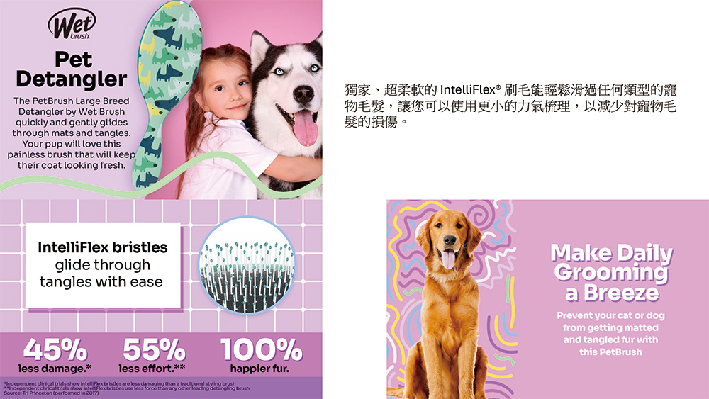 來自美國的獨家技術,Wet Brush超柔軟寵物梳,搭載創新IntelliFlex®刷毛,能輕盈滑過任何類型的毛髮,不打結、不拉扯!只需輕輕一梳,就能減少毛髮損傷,讓梳理變得更輕鬆,毛孩也能盡享前所未有的溫柔呵護!